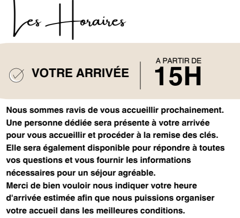 Je serai également présent pour vous accueillir et vous remettre les clés afin que vous commenciez votre séjour en toute sérénité.